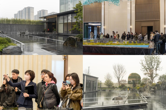 雨中的运达会展湾售楼部别有一番韵味,细雨为它增添了一抹柔和而神秘的光彩。尽管天空并不作美,但这并没有阻挡师生们探索的脚步。湖湘首个湾区高端城市综合体—运达会展湾,这个坐落在长沙自贸交流区的庞然大物,占地1100亩,是一个集住宅、商业、文化、体育和康养等多功能于一体的综合性项目。其独特的地理位置和丰富的自然景观资源,包括“一带一轴一洲一湿地双公园”,为其赋予了无与伦比的生态优势。在顾问的详细解说下,师生们观看了会展湾住宅区的宣传视频。视频中展示了整个楼盘的规划全貌,从总体布局到每个细节的设计,都彰显着开发商的专业和用心。随后,我们参观了几套精心设计的样板间。这些样板间不仅展示了房间的空间布局和装修风格,更让师生们对房间的细部构造有了更深入地了解。同学们不仅学到了很多关于城市综合体规划的知识,还深刻感受到了现代建筑设计的魅力和对细节的执着追求。